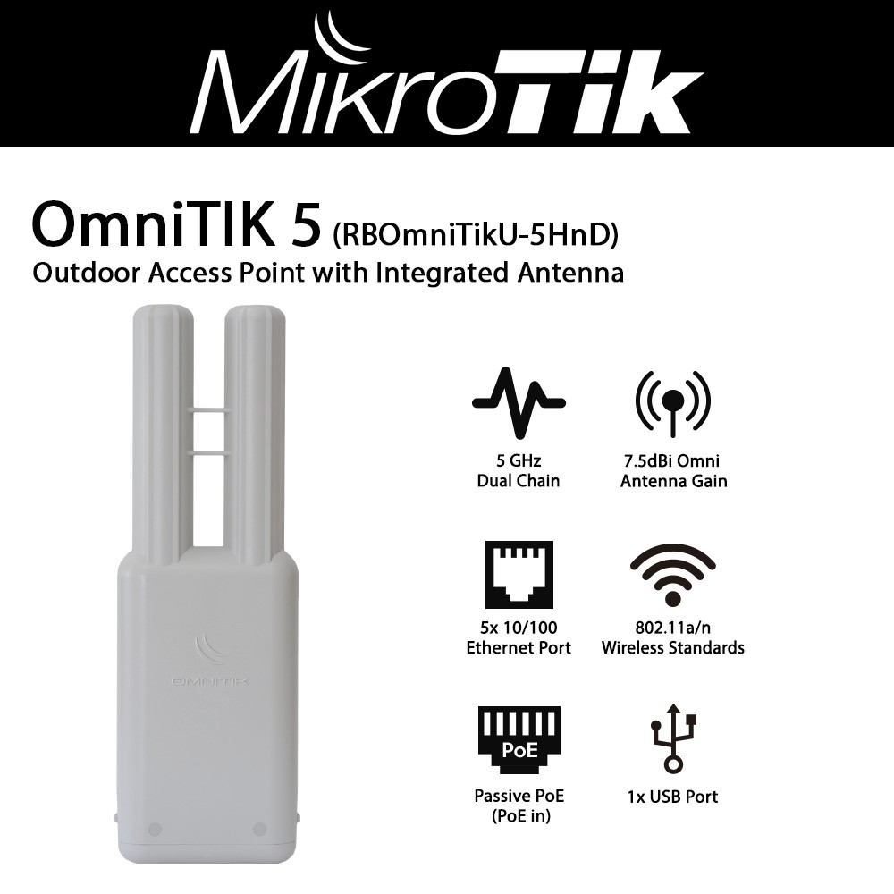 OmniTIK 5 با پشتیبانی از استانداردهای 802.11a/n/ac، توانایی ارائه سرعت بالا و پایداری سیگنال را دارد. این دستگاه مجهز به آنتن Omni با توان قابل توجه است که امکان پوششدهی مناطق وسیع را بدون نیاز به نصب چندین دستگاه فراهم میکند.