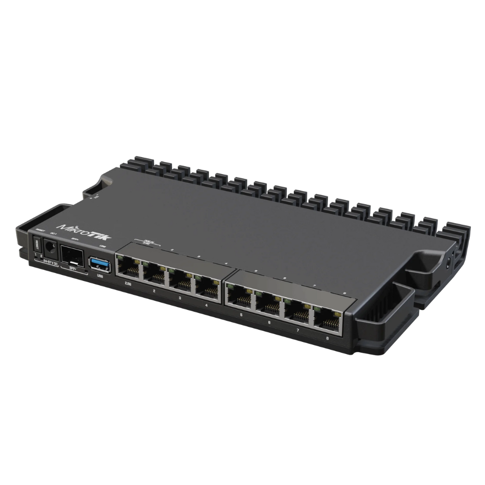 در بخش پورتها نیز RB5009UG+S+IN بسیار قدرتمند ظاهر شده است: شامل 7 پورت گیگابیت اترنت (10/100/1000 Mbps)، 1 پورت 2.5 گیگابیت اترنت و 1 اسلات 10 گیگابیت SFP+ برای لینکهای فیبری یا شبکههای سرعت بالا. علاوه بر این، دارای یک پورت USB 3.0 نوع A نیز هست که قابلیت اتصال حافظه یا مودم جانبی را فراهم میکند.