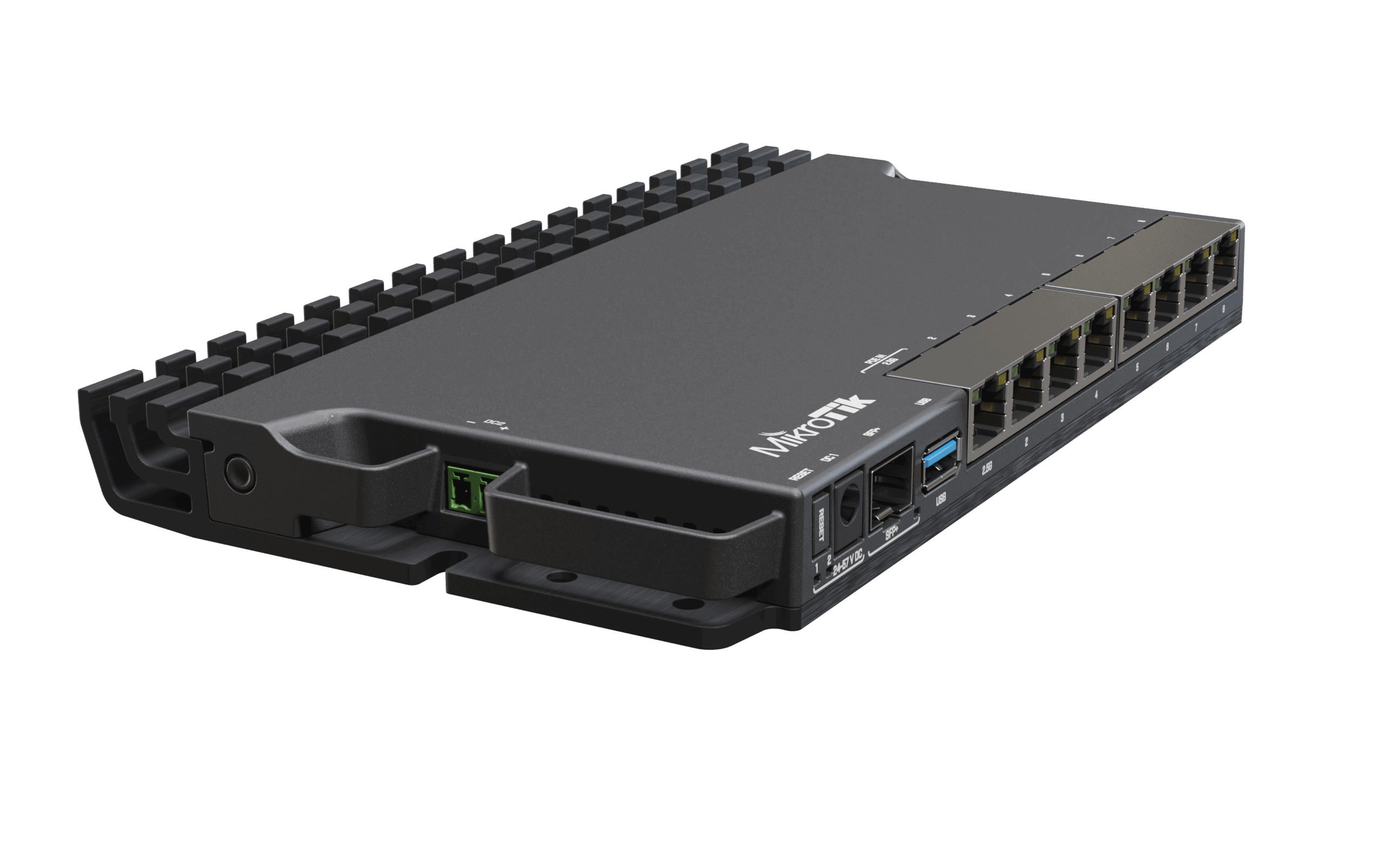 روتر RB5009UG+S+IN از برند معتبر MikroTik طراحی شده است تا نیازهای شبکههای پیشرفته، بخصوص شبکههای آزمایشی خانگی (home lab) یا دفاتر کوچک با حجم ترافیک بالا را پاسخ دهد. بدنه دستگاه فلزی با ضخامت کم (حدود 22 میلیمتر) به همراه تهویه پسیو، امکان نصب در فضای رک یا روی میز را فراهم میآورد. طراحی ویژه این مدل بهگونهای است که میتوان چهار واحد از آن را در یک فضای 1U رکمونت نصب کرد و از این نظر بسیار مناسب محیطهای فشرده است.