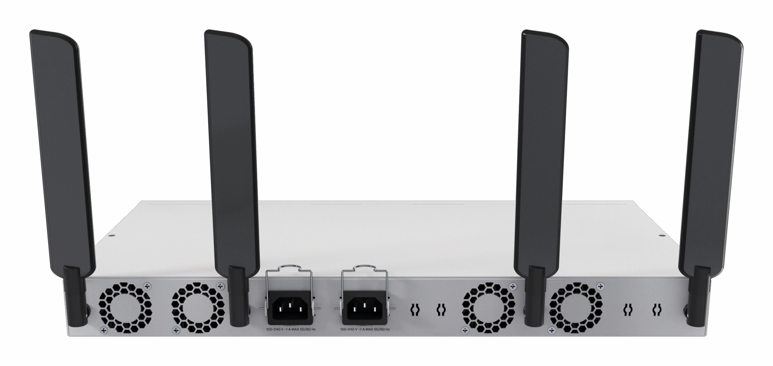دو ورودی AC با دامنه ۱۰۰–۲۴۰ ولت و منبع تغذیه افزونه برای افزایش اطمینان شبکه.