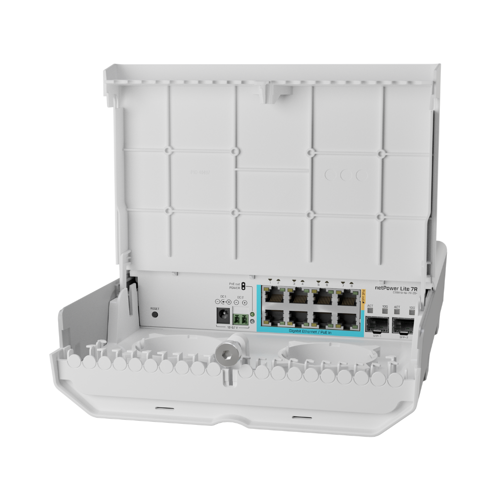 سوئیچ netPower Lite 7R میکروتیک یک دستگاه کاملاً کاربردی برای پروژههای ISP کوچک، ساختمانهای چندواحدی یا وضعیتهای MDU است که قصد دارند اینترنت را با هزینه پایین و با استفاده از شبکه اترنت (نه GPON) ارائه دهند. این دستگاه بخشی از مفهوم GPEN میکروتیک است که امکان انتقال فیبر را با هزینه کمتر و پیچیدگی کمتر فراهم میکند.